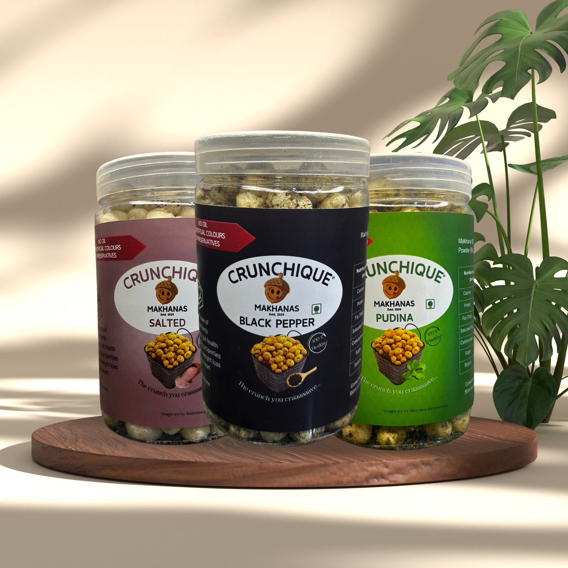 Discover the perfect snacking harmony with our Assorted Makhana Pack, featuring three wholesome flavors – Salted, Black Pepper, and Pudina. Each variety is crafted from premium-quality fox nuts, slow-roasted in pure ghee to deliver a light, crunchy texture that’s both satisfying and nutritious. Whether you crave the simplicity of Salted, the bold kick of Black Pepper, or the refreshing zest of Pudina, this pack has something for every palate.
